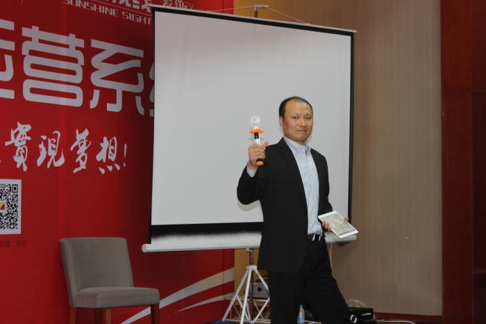讲课老师不是真正意义的讲师,他更是一个企业家,只有经验的分享!积淀18年之久的眼镜行业经验!他就是阳光视线实业集团董事长王永红,行业都称他“村长”!