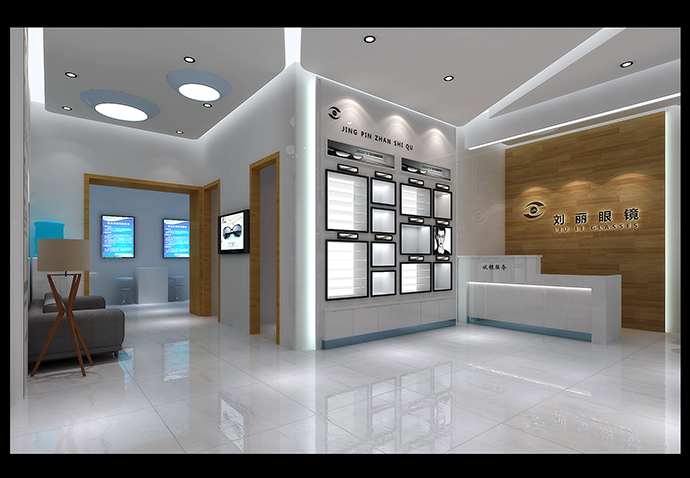 不论眼镜店的面积有多大,都可以划分为几个区域。各个区域根据各自的用途和作用在设计上要有适当的区分,但是前提是要和店面整体相互融合。