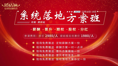 12月16日-18日镜店通《薪酬晋升股权落地方案班》火热报名中!