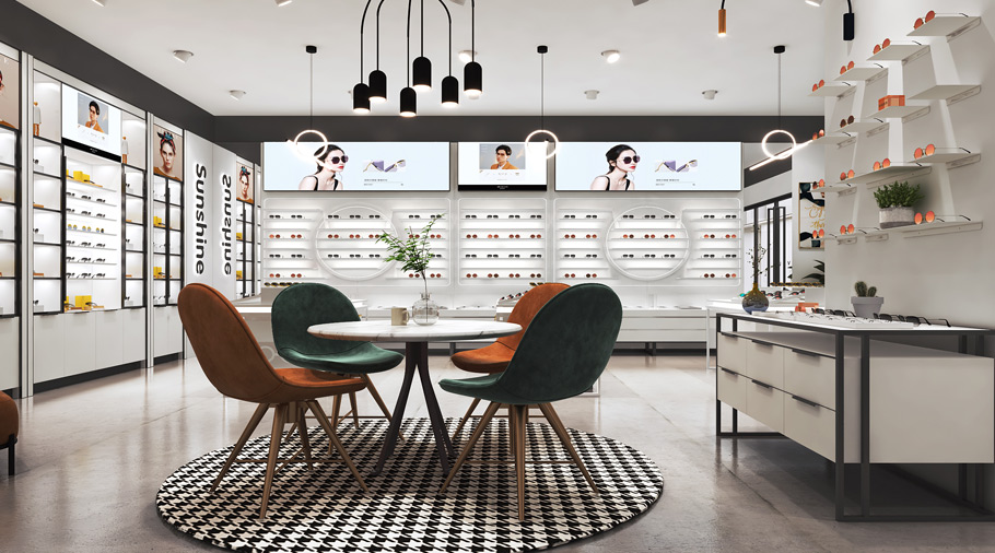 眼镜展柜布局的立体性:要充分利用眼镜展柜的功能,能够让消费者从各个角度都能看到商品,全方位的了解店里的眼镜。不会因为空间约束,致使商品的可见度下降。
